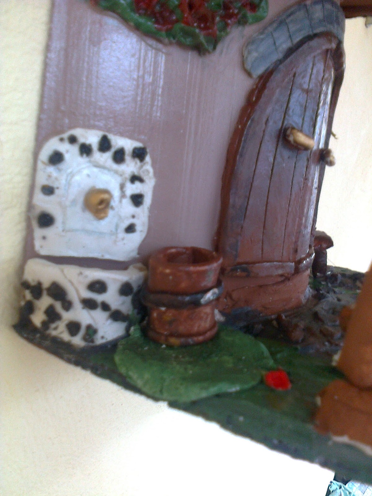 Aqui se aprecia en un lado . Y al otro lado hay un banquito bajo la ventana es la casa ideal no? con su porche, su fuente .jardin con banco y terraza preparada para esas cenas d verano a la luz de las estrellas , no me digais que no es genial jajaj. Bromas aparte espero que os guste .